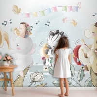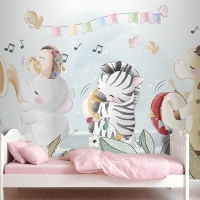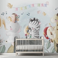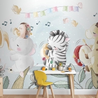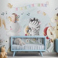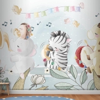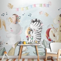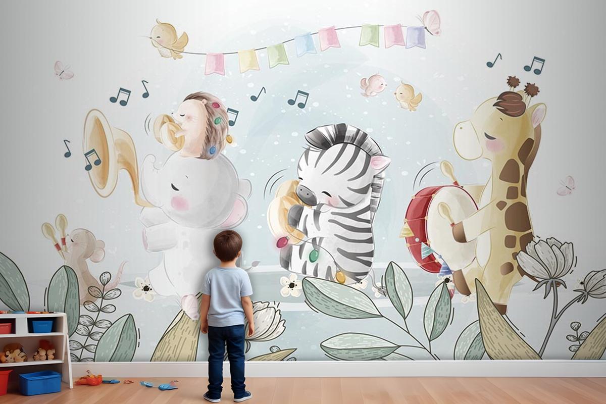 Çocuk Odası Duvar Kağıdı Müzik Çalan Sevimli Hayvanlar