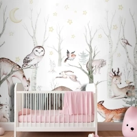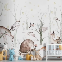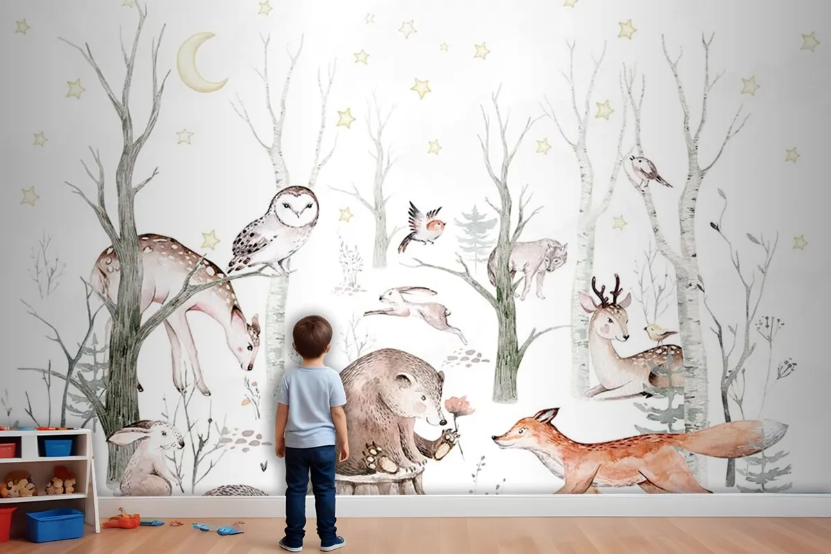 Çocuk Odası Duvar Kağıdı Ormandaki Sevimli Hayvanlar