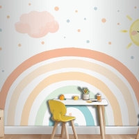 Çocuk Odası Duvar Kağıdı Soft Renk Gökkuşağı Duvar Kağıdı