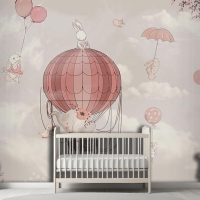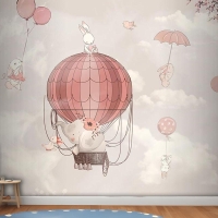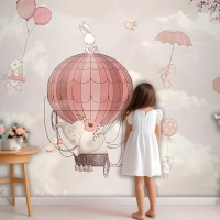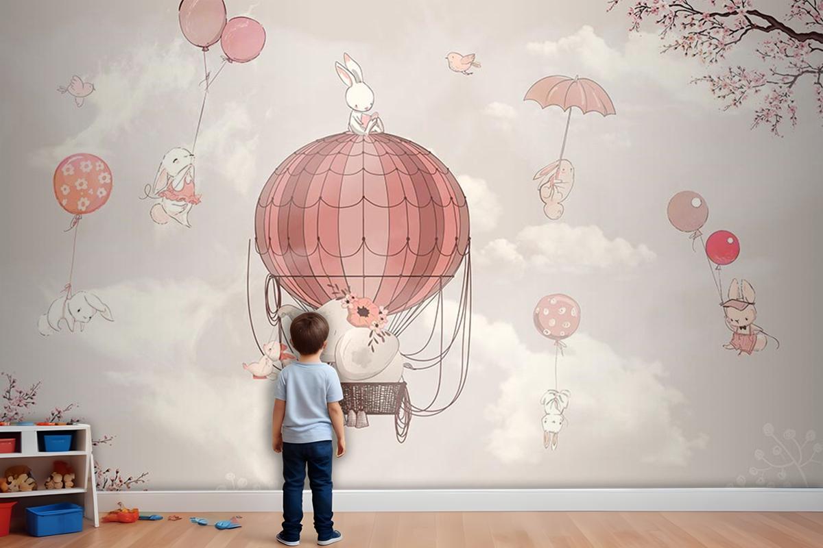 Çocuk Odası Duvar Kağıdı Uçan Balonlar Ve Sevimli Tavşanlar