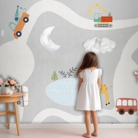 Çocuk Odası Kamyon Dozer Çocuk Odası Duvar Kağıdı