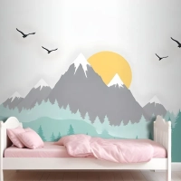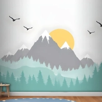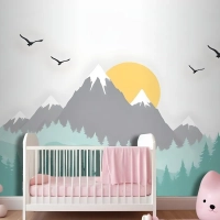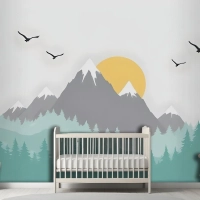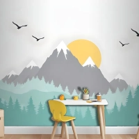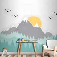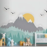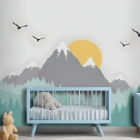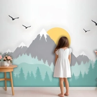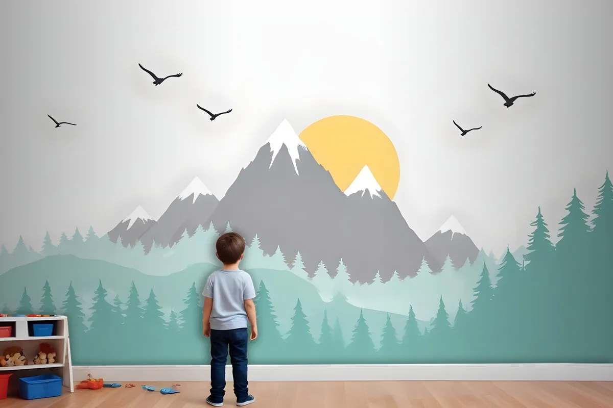 Çocuklar Için Ağaçlarla Dağ Manzarası Çocuk Odası Duvar Kağıdı