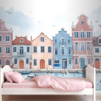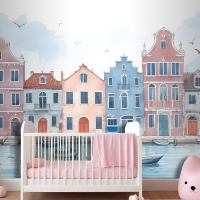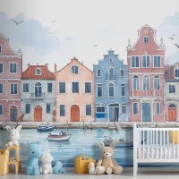 Çocuklar Için Suluboya Hollandalı Evler Çocuk Odası Duvar Kağıdı