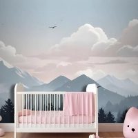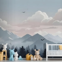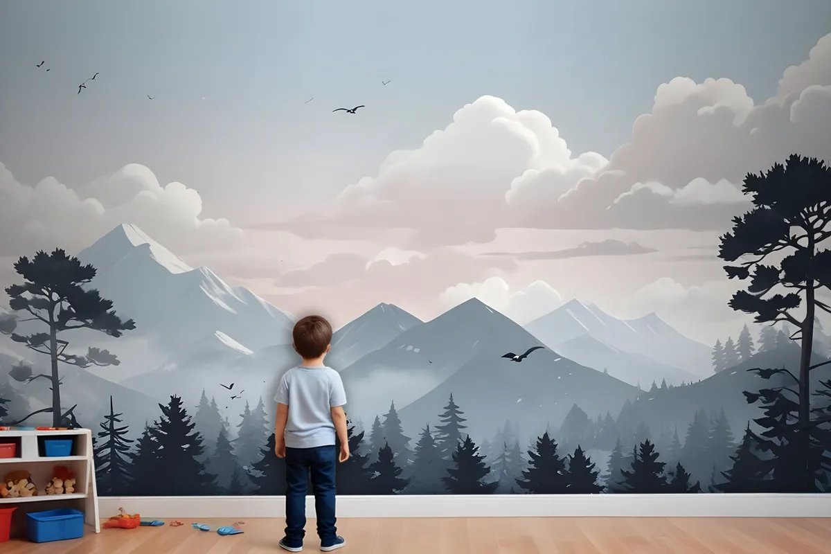 Çocuklar Karla Dağ Manzarası Çocuk Odası Duvar Kağıdı