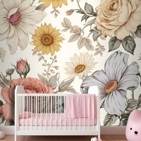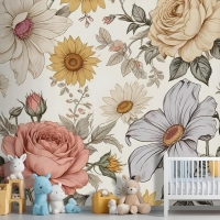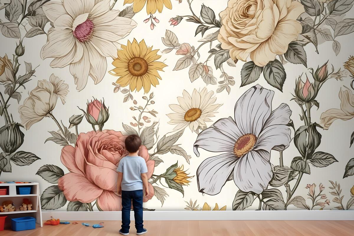 Çocuklar Şakayık Ve Papatya Çiçek Çocuk Odası Duvar Kağıdı