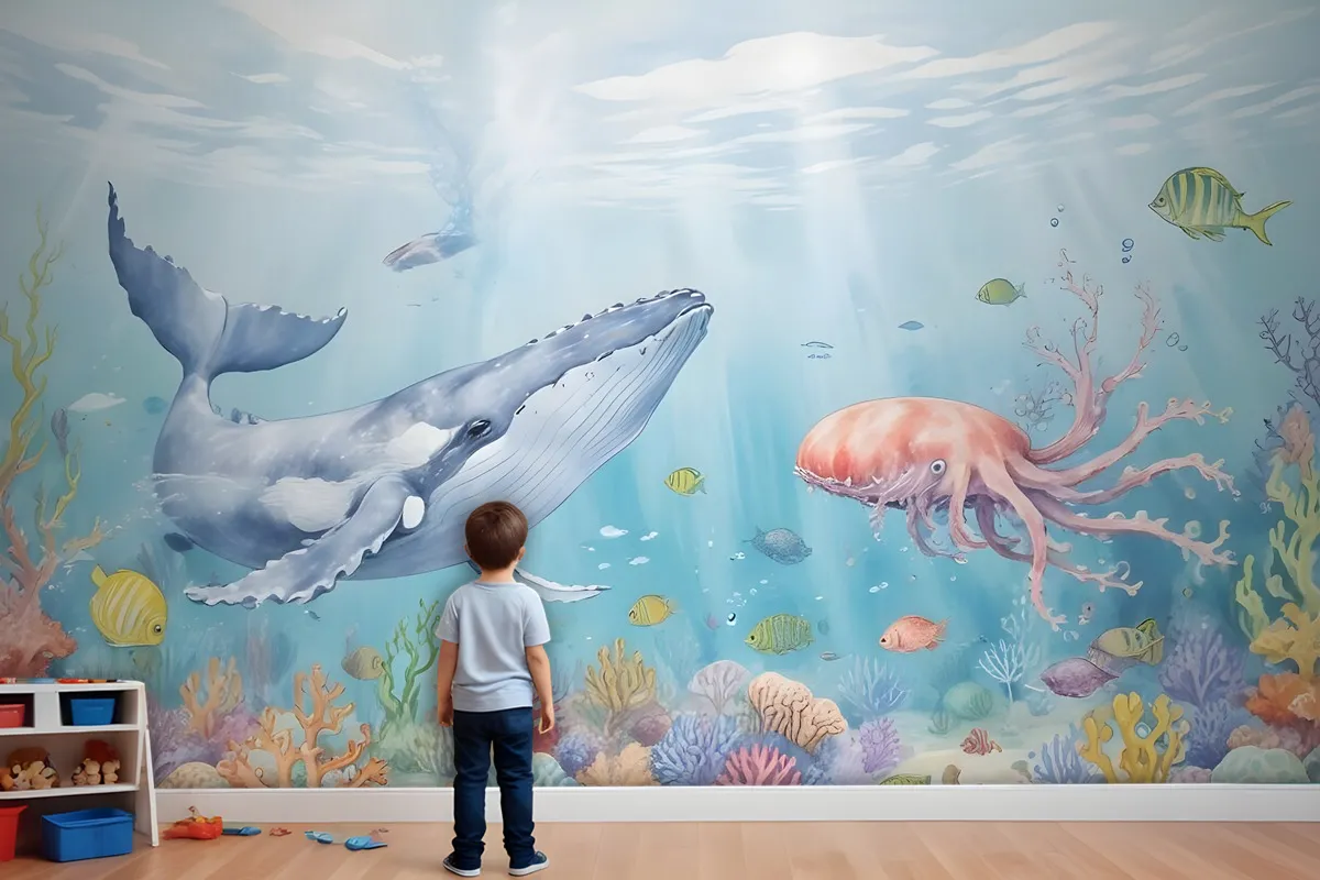 Çocuklar Sevimli Balina Denizaltı Çocuk Odası Duvar Kağıdı Duvar Resimleri