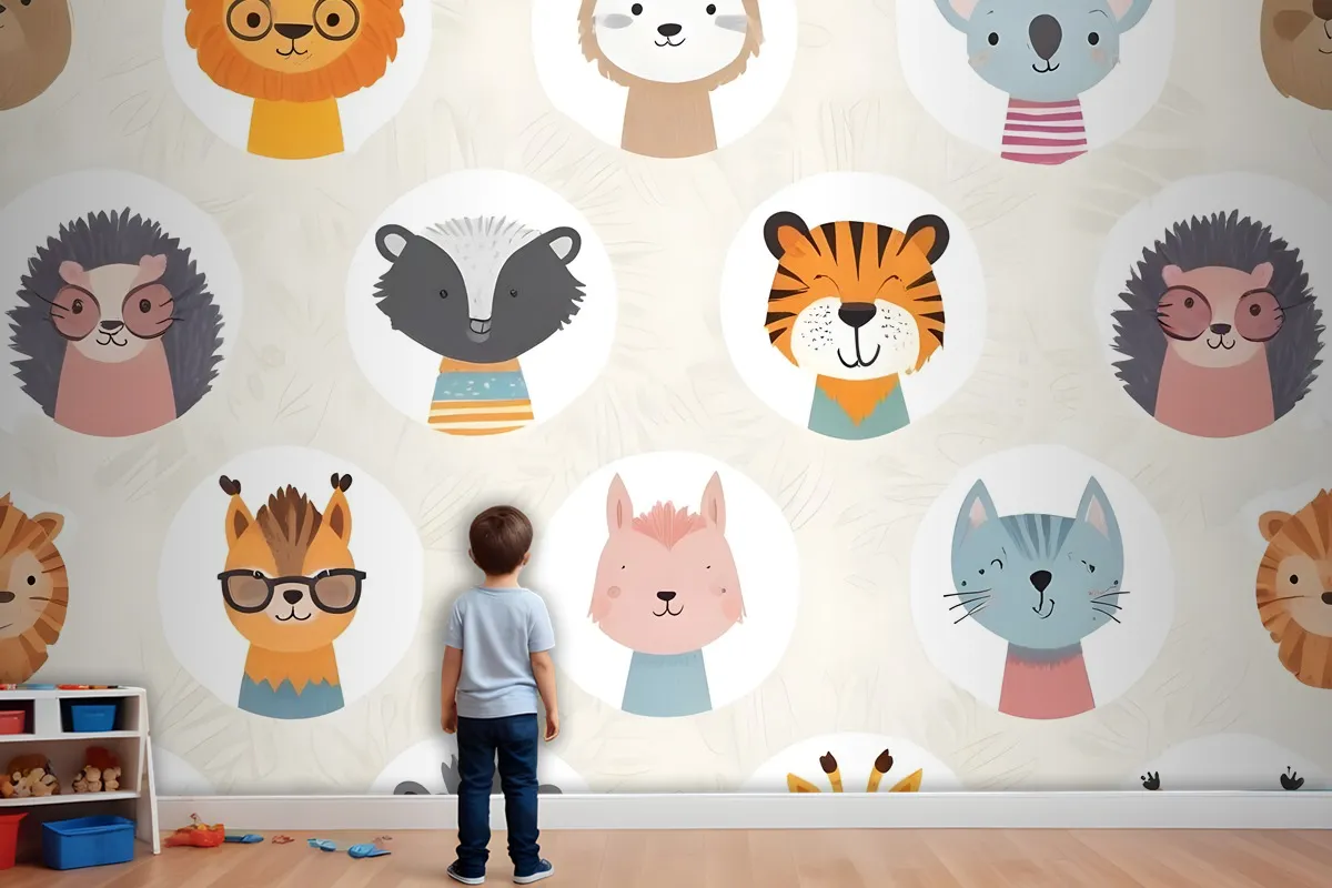 Çocuklar Sevimli Safari Hayvanlar Desen Çocuk Odası Duvar Kağıdı