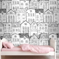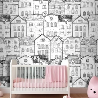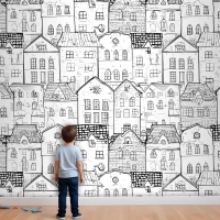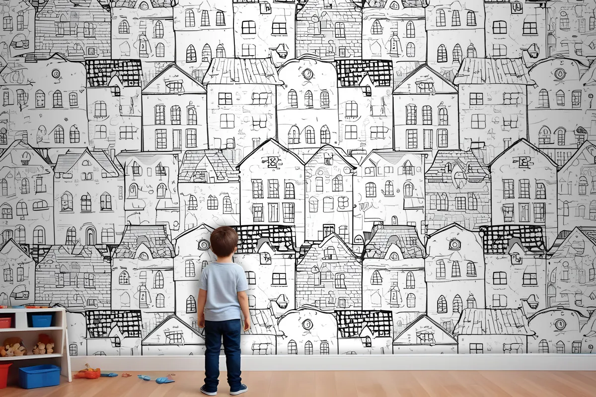 Çocuklar Siyah Beyaz Eskiz Ev Çocuk Odası Duvar Kağıdı