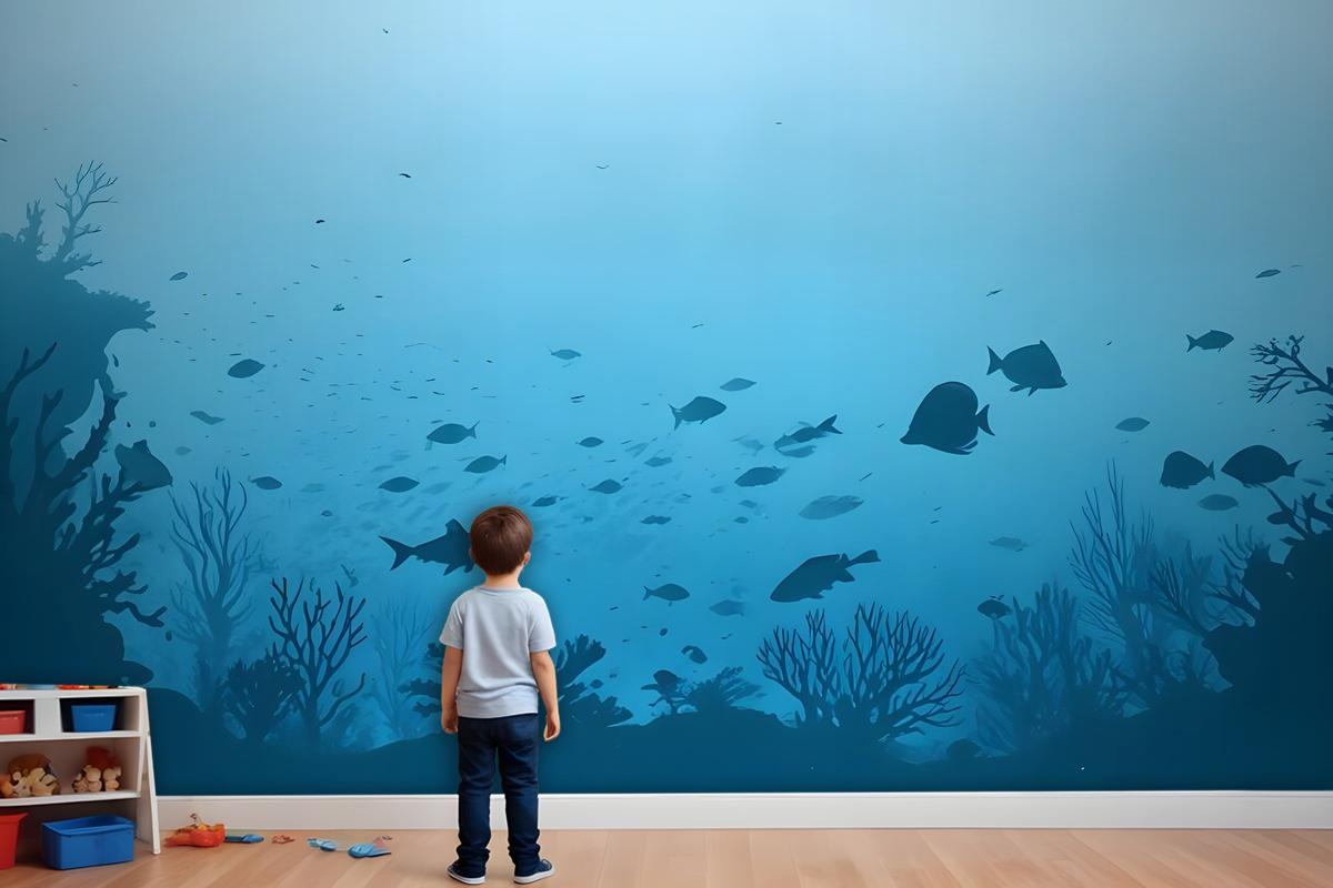 Çocuklar Sualtı Ve Balıklar Çocuk Odası Duvar Kağıdı