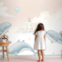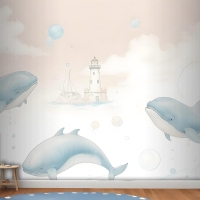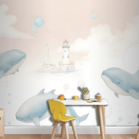 Çocuklar Yumuşak Balina Denizaltı Yaşamı Çocuk Odası Duvar Kağıdı