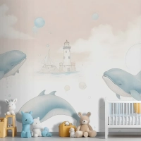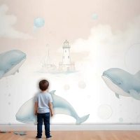 Çocuklar Yumuşak Balina Denizaltı Yaşamı Çocuk Odası Duvar Kağıdı