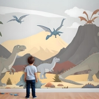 Çocuklar Yumuşak Dinozorlar Çocuk Odası Duvar Kağıdı