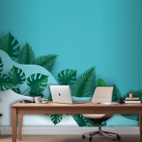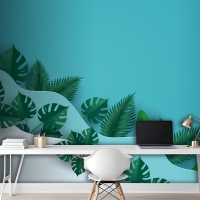 Çok Dalga Katmanlı Ofis Duvar Kağıdı Duvarında Yeşil Yapraklar Veya Yeşillik