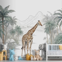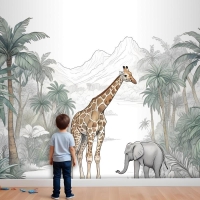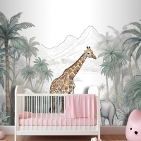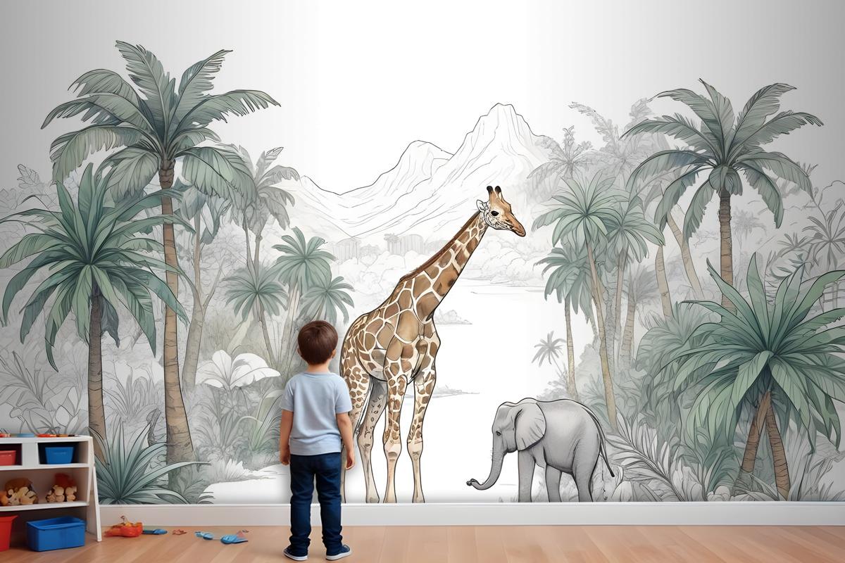 Dağ Çocuk Odası Duvar Kağıdı Ile Çocuklar Tropikal Hayvanlar