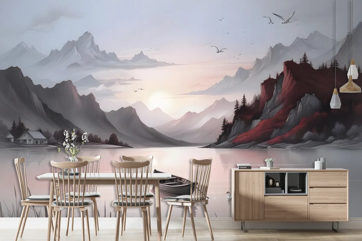 Dağlar Ile Doğa Manzarası Duvar Kağıdı