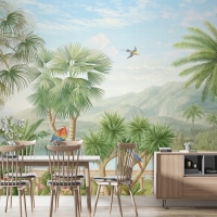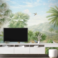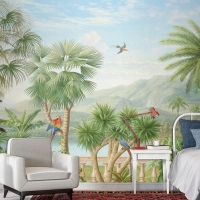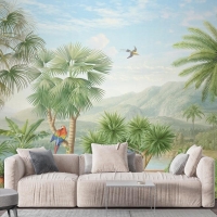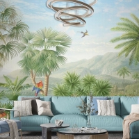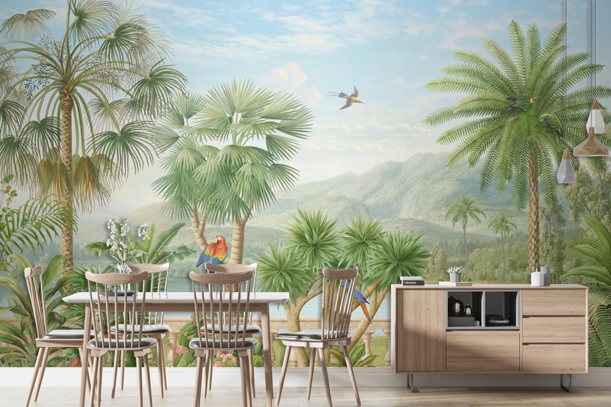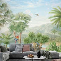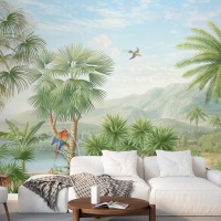 Dağlar Papağanlar Tropik Manzara Duvar Kağıdı