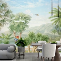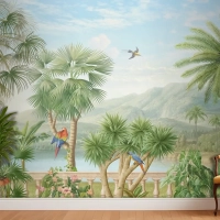 Dağlar Papağanlar Tropik Manzara Duvar Kağıdı