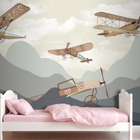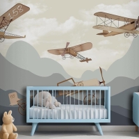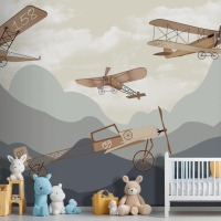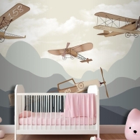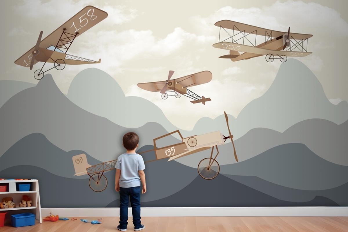 Dağlar Uçaklar Manzara Çocuk Odası Duvar Kağıdı