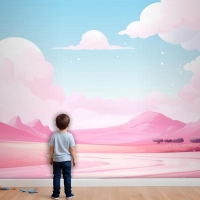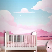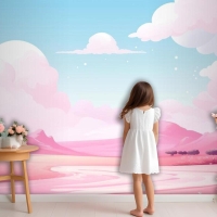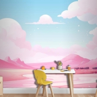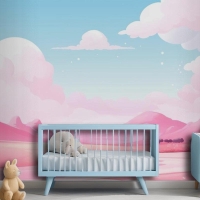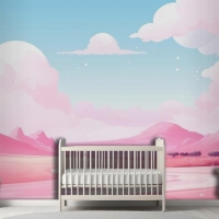 Dağlar Ve Bulutlarla Manzara Çocuk Odası Duvar Kağıdı