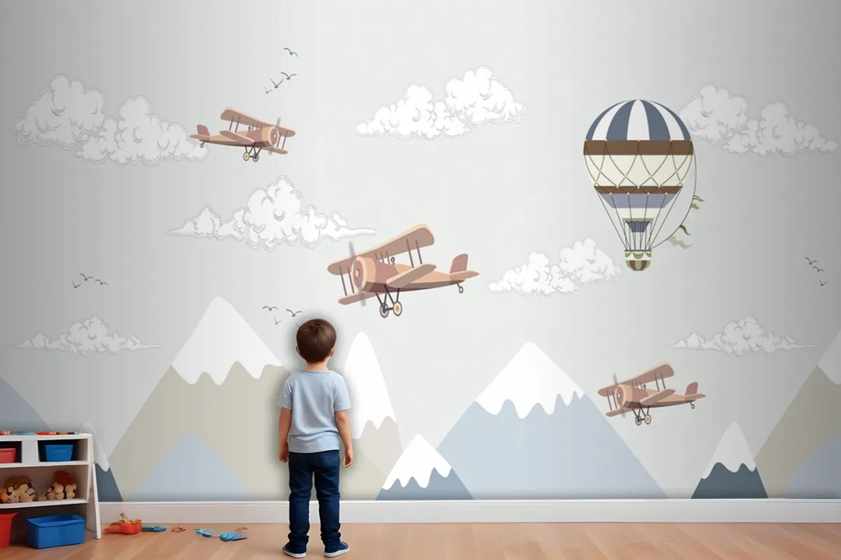 Dağlar Ve Sıcak Hava Balonları Çocuk Bebek Odası Duvar Kağıdı