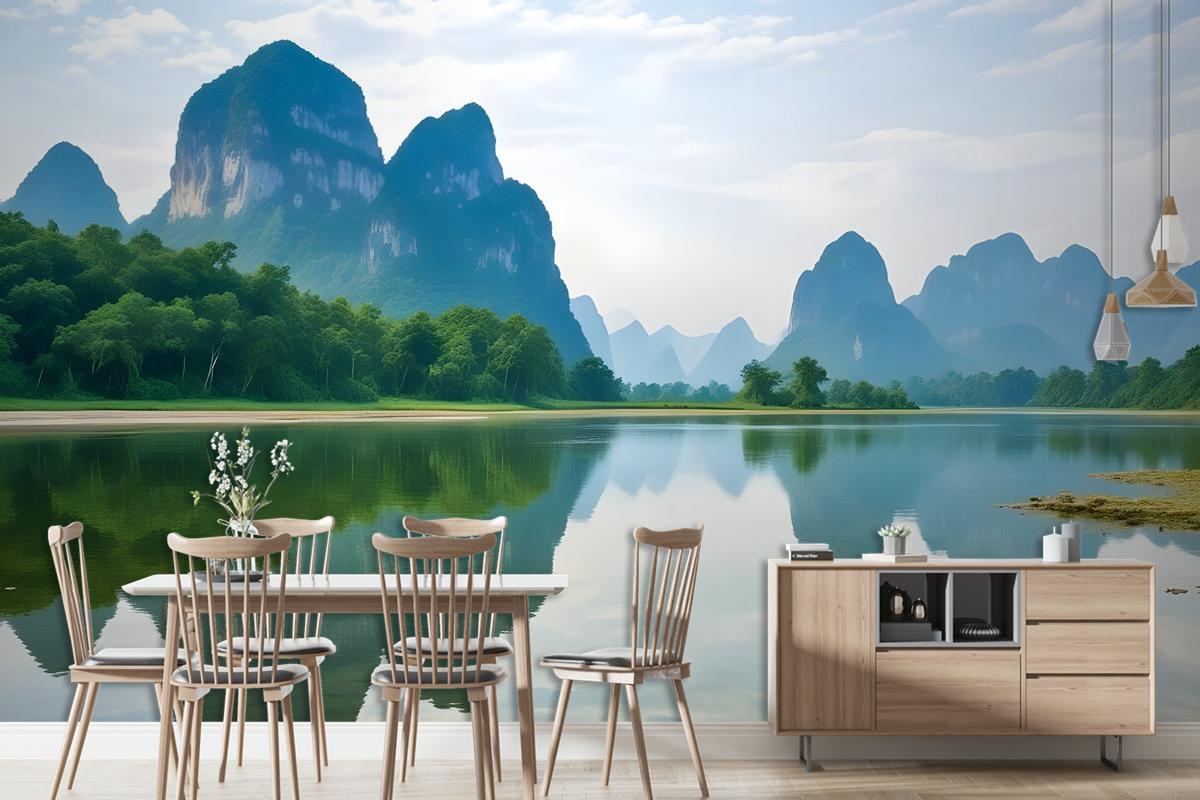 Dağlarla Orman Gölü Manzarası Duvar Kağıdı