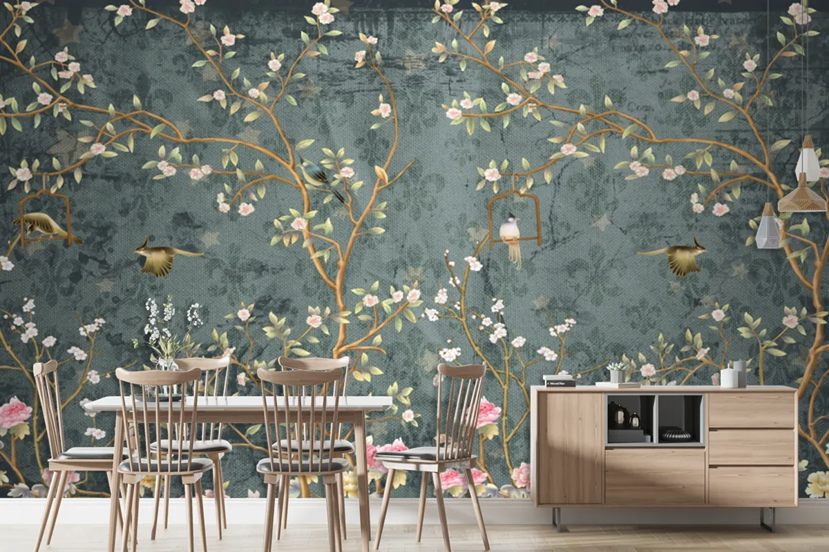 Dallar Kuşlar Ve Çiçekler Duvar Kağıdı