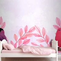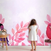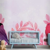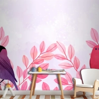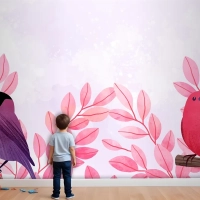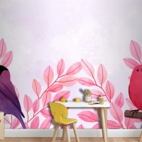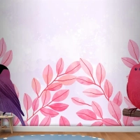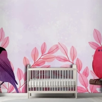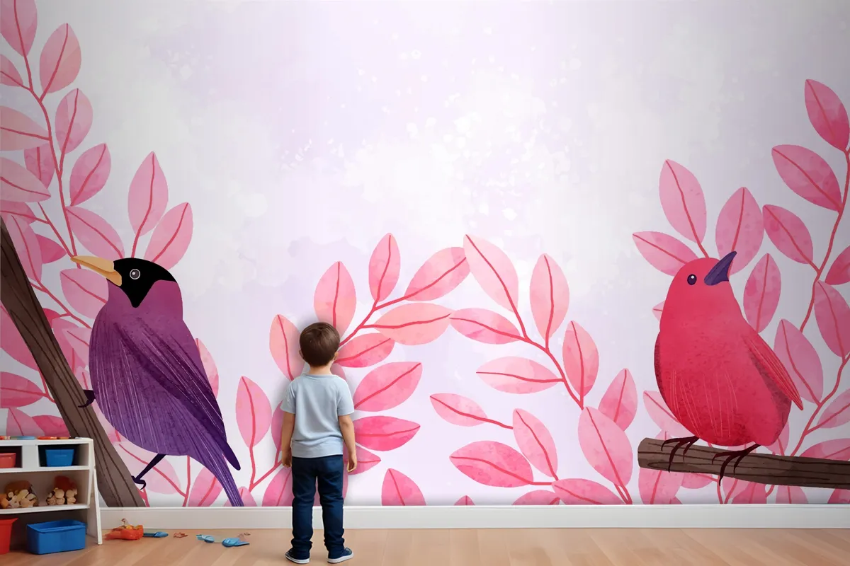 Dallarda Oturan Kuşların Güzel Suluboya Çocuk Odası Duvar Kağıdı