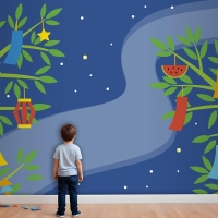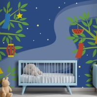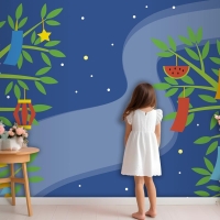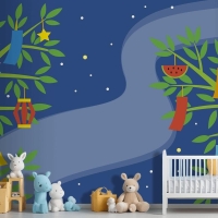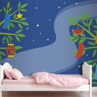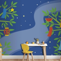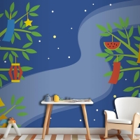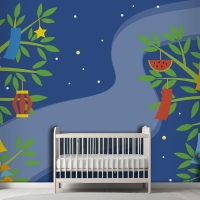 Dallarda Süslemeli Düz Tanabata Arkaplan Çocuk Odası Duvar Kağıdı
