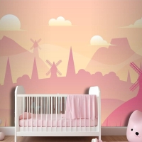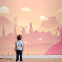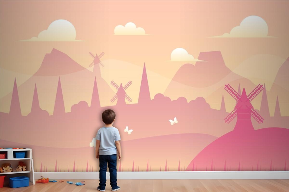 Degrade Bahar Manzara Arka Plan Çocuk Odası Duvar Kağıdı Duvar