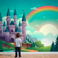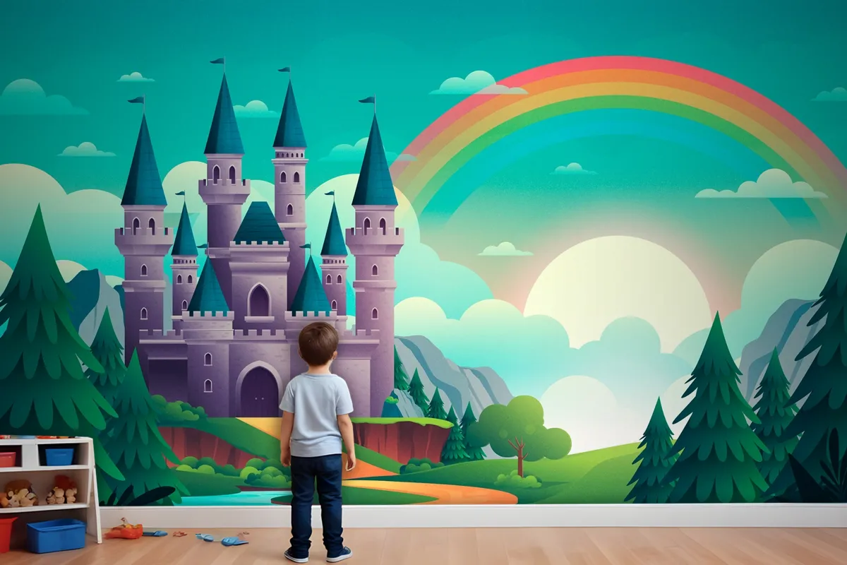 Degrade Peri Masalı Arka Plan Kids Boy Çocuk Odası Duvar Kağıdı