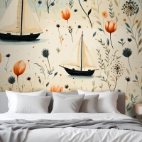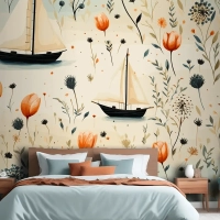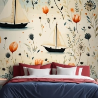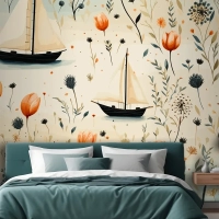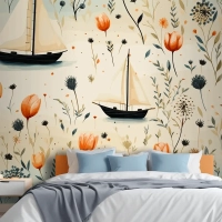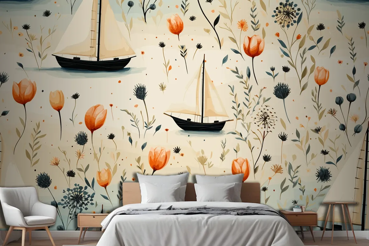 Deniz Hayvanları Bir Deniz Feneri Ve Kabuklu Bir Tekne Denizyıldızı Yatak Odası Duvar Kağıdı