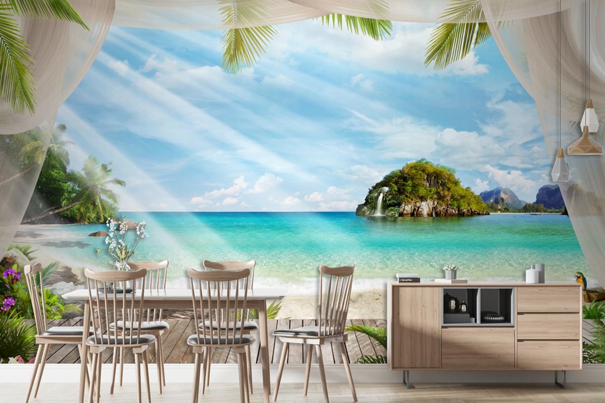 Deniz Kenarı Ahşap İskele Duvar Kağıdı