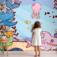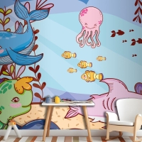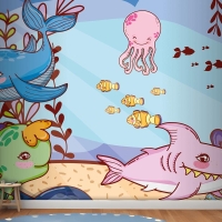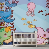 Deniz Yosunu Bitkileri Ile Sevimli Deniz Hayvanları Çocuk Odası Duvar Kağıdı