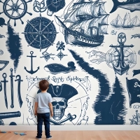 Denizci Haritası Macera Çocuk Odası Duvar Kağıdı