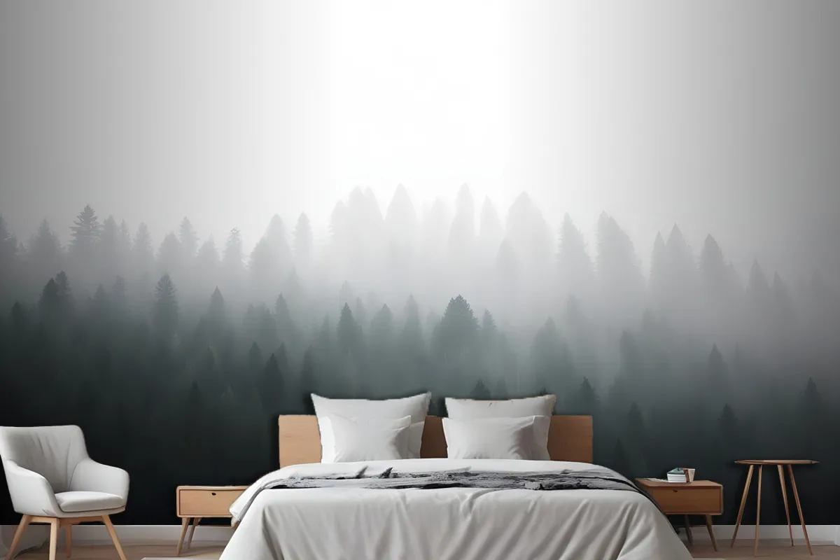 Derin Yeşil Ombre Orman Yatak Odası Duvar Kağıdı
