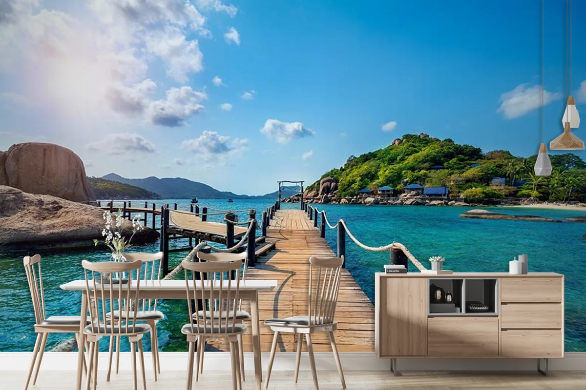 Derinlik 3 Boyutlu Iskele Deniz Manzara Duvar Kağıdı