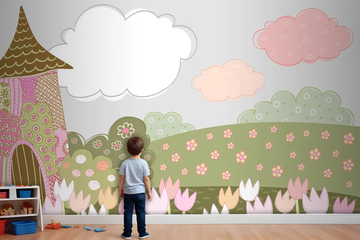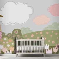 Desenli Dekoratif Şehir Çocuk Odası Duvar Kağıdı