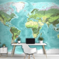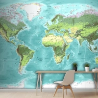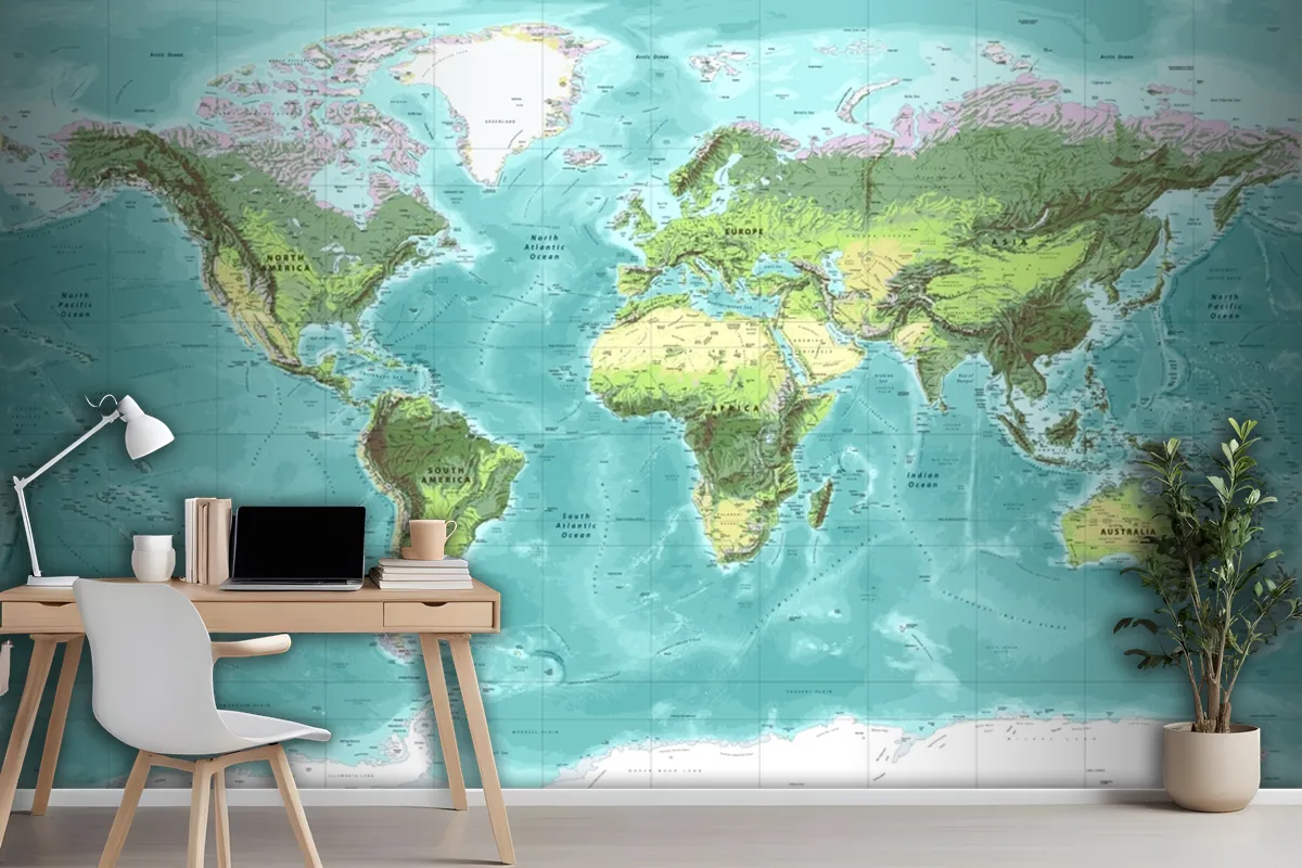 Detaylı Fiziksel Dünya Haritası Miller Projeksiyonu Duvar Kağıdı