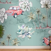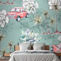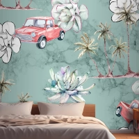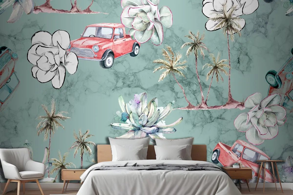 Dikişsiz Desen Tropikal Ve Palmiye Ağaçları Yatak Odası Duvar Kağıdı