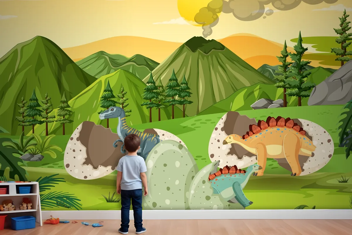 Dinozor Karikatür Çocuk Odası Duvar Kağıdı Ile Tarih Öncesi Orman