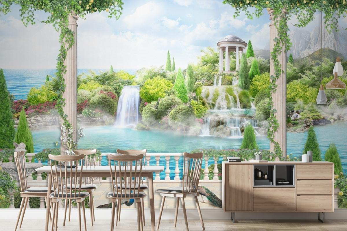Doğa Şelale Mimari Balkon Manzara Duvar Kağıdı
