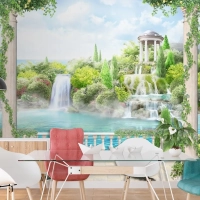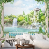 Doğa Şelale Mimari Balkon Manzara Duvar Kağıdı