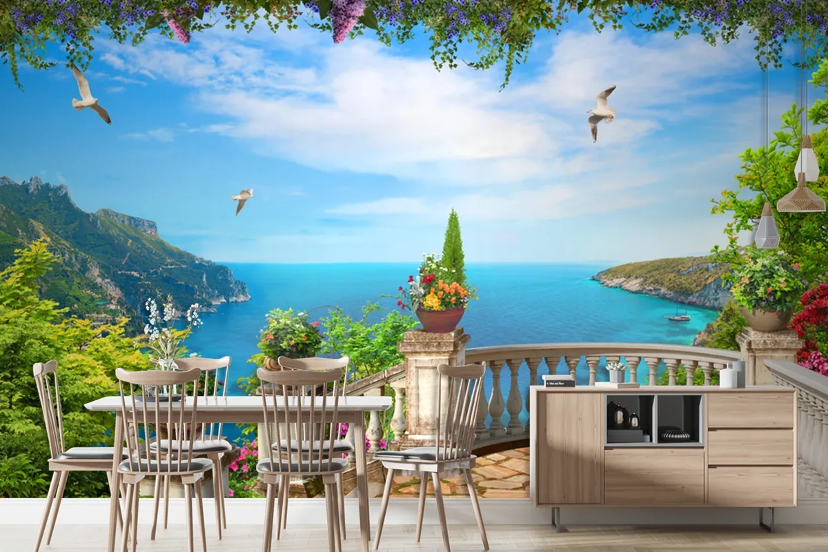 Doğa Ve Mimari Uyumunda Bir Manzara Duvar Kağıdı