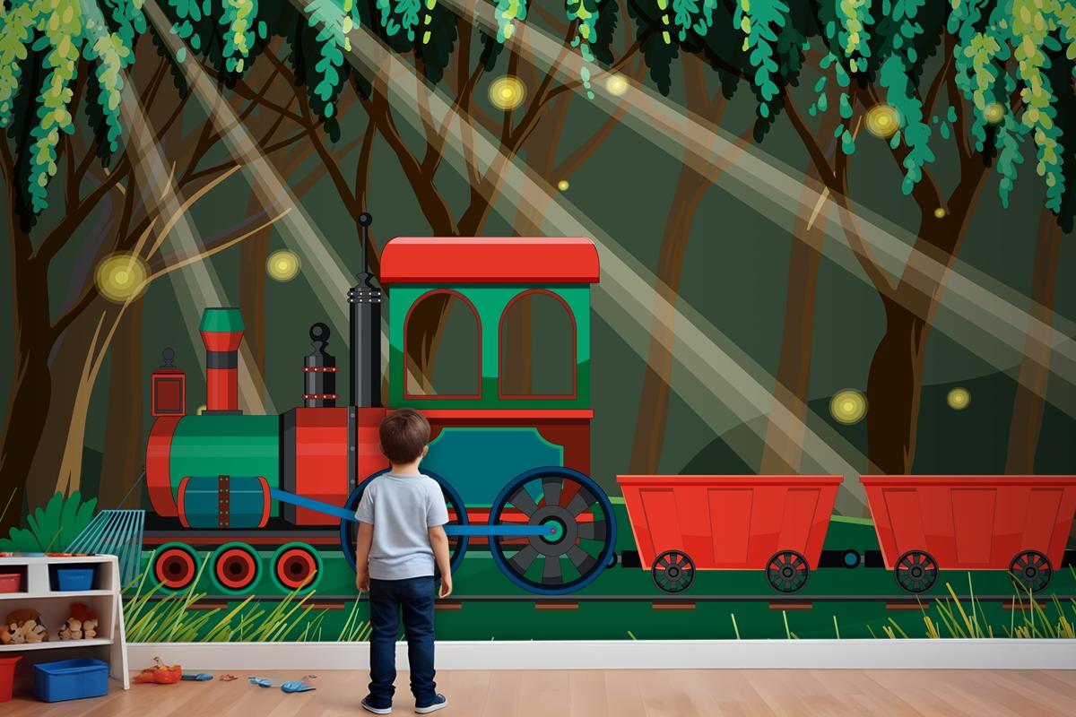 Doğal Sahne Çocuk Odası Duvar Kağıdı Ile Tren