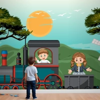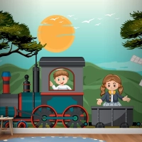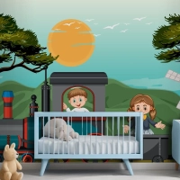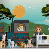 Doğal Sahneli Trende Bir Çocuk Bebek Odası Duvar Kağıdı
