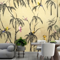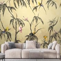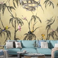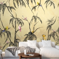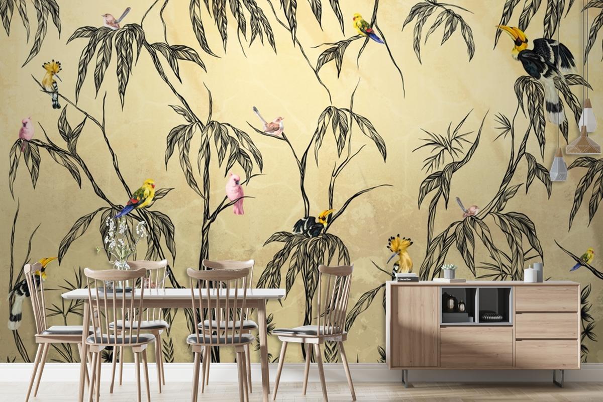 Dokulu Bej Duvar Kağıdı Duvarında Tropik Kuş