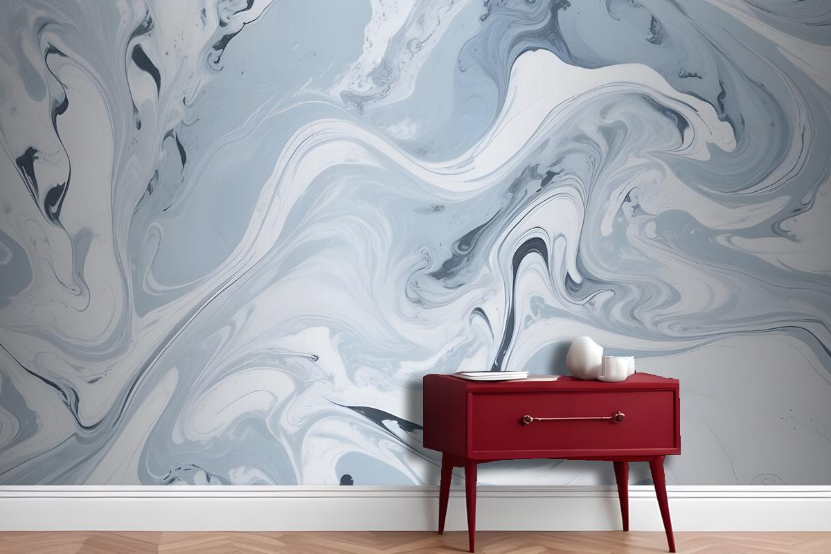 Dönen Mavi Ve Beyaz Mermer Desen Antre Hol Koridor Duvar Kağıdı