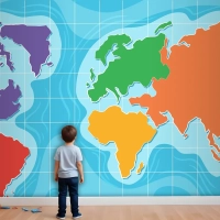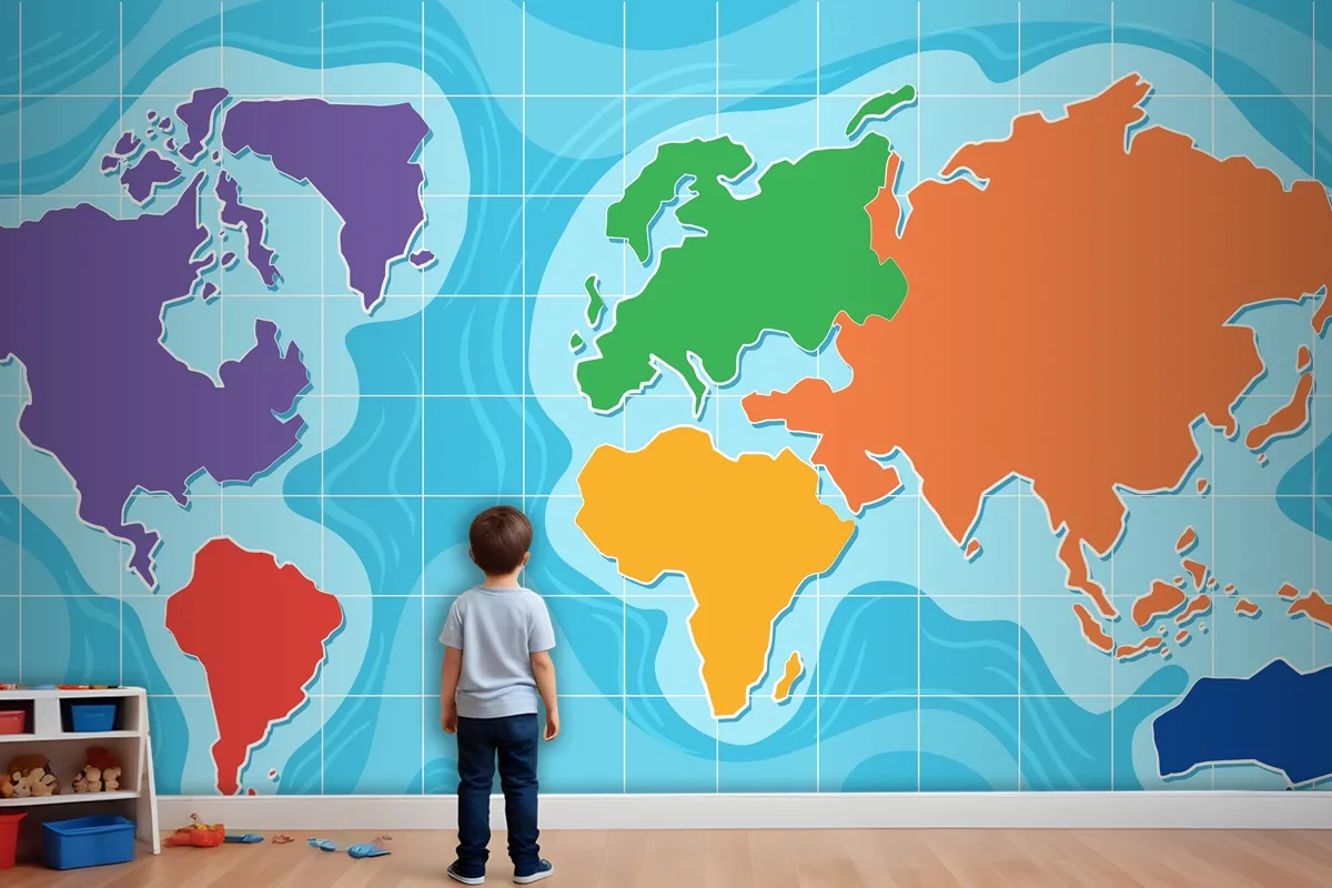 Dünya Haritası Çocuk Odası Duvar Kağıdı Duvarının Havadan Görünümü