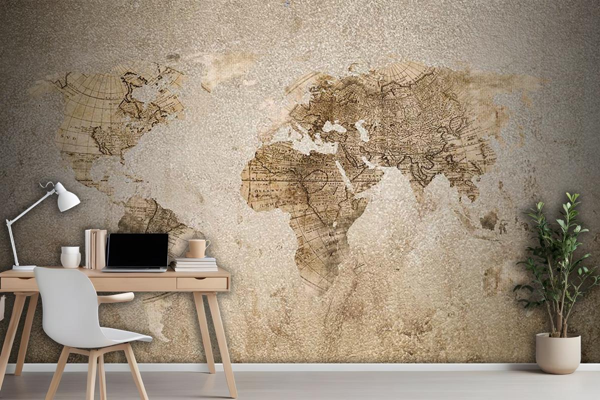 Dünya Haritası Eskitme Tarz Duvar Kağıdı
