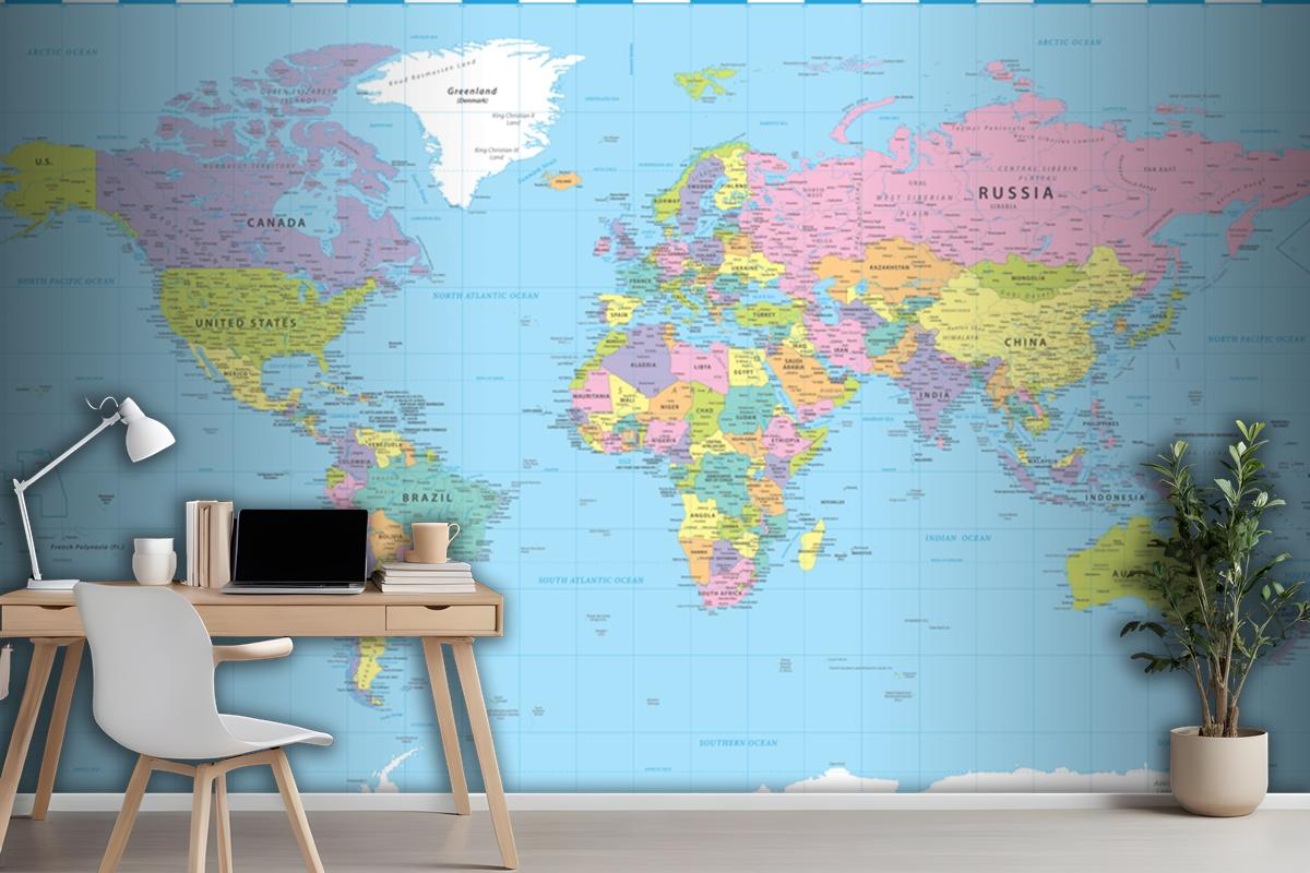 Dünya Haritası Renkli Siyasi Duvar Kağıdı